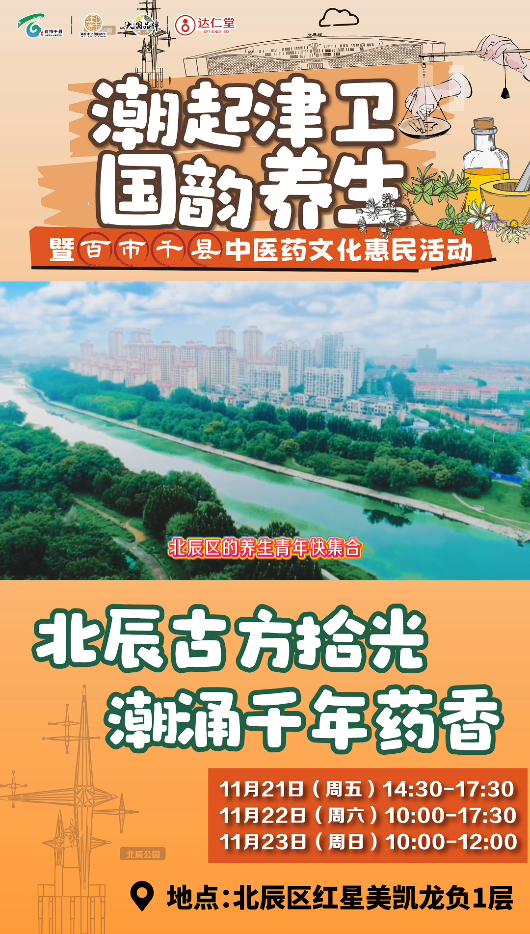 11月21日至23日,“潮起津衛(wèi)國韻養(yǎng)生”天津市中醫(yī)文化市集北辰站將隆重舉行。