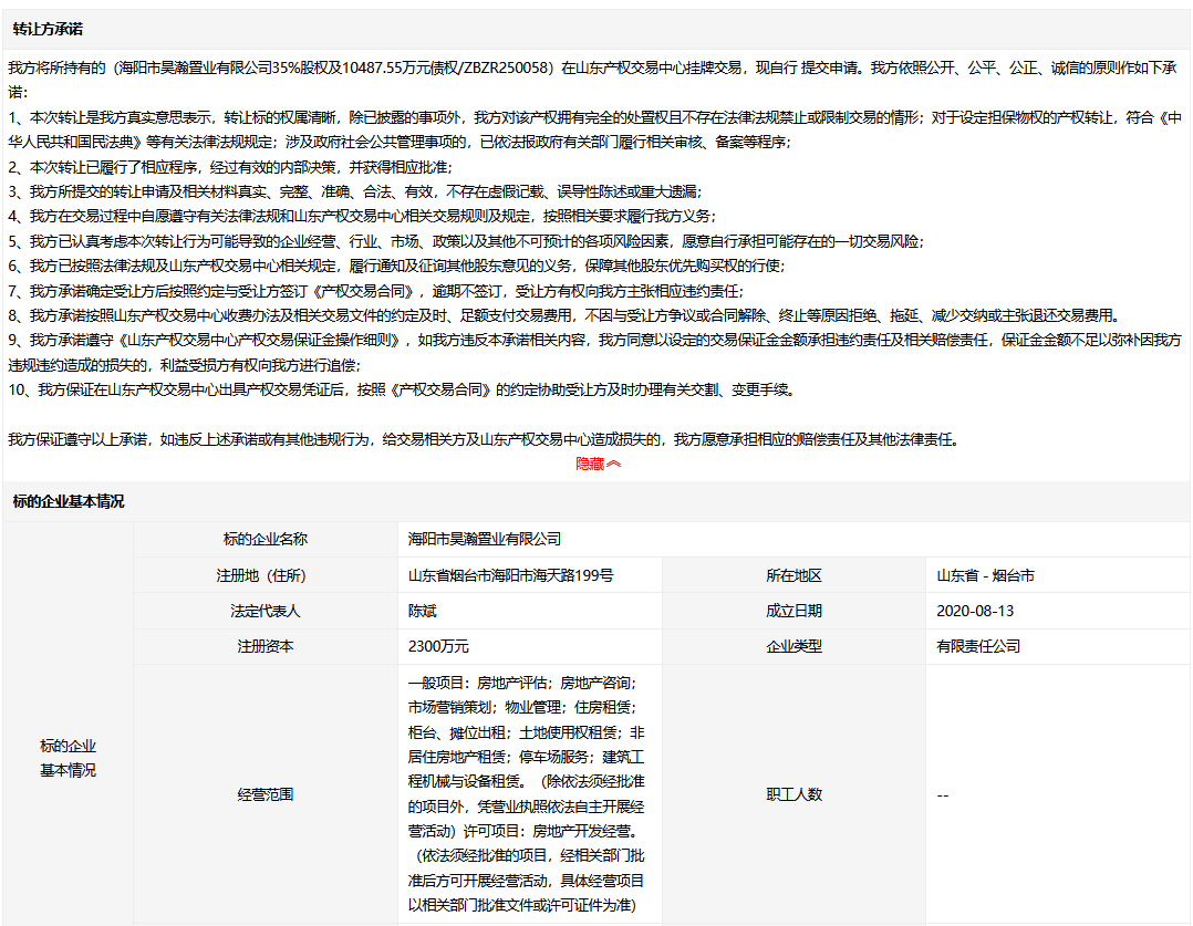 海陽市昊瀚置業(yè)有限公司35%股權及10487.55萬元債權