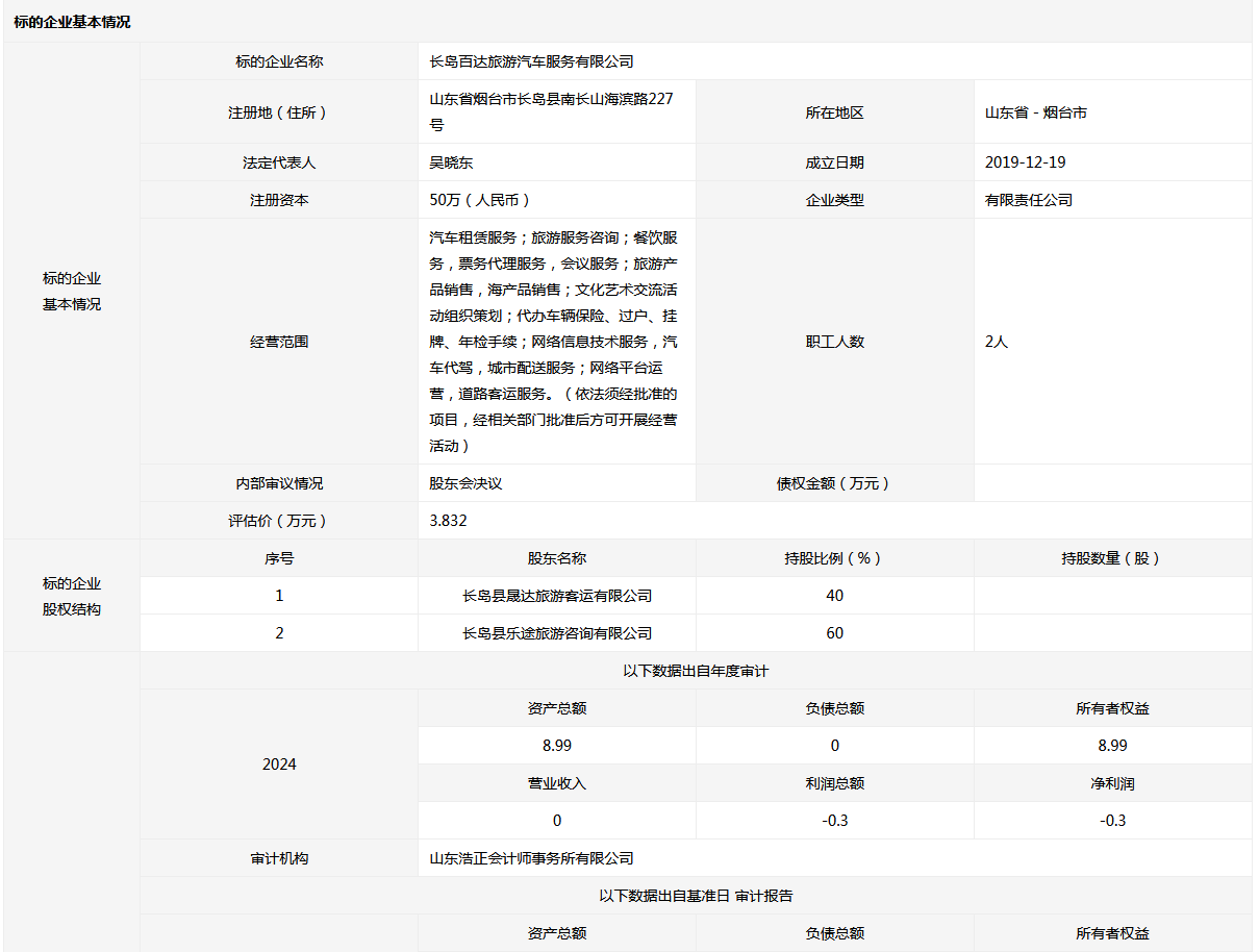 長島百達旅游汽車服務有限公司40%國有股權(quán)