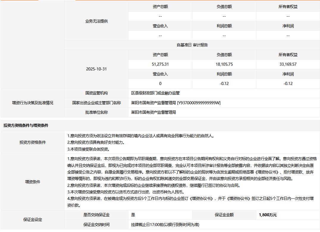 轉(zhuǎn)讓方:萊陽市南泗莊水庫投資開發(fā)有限公司