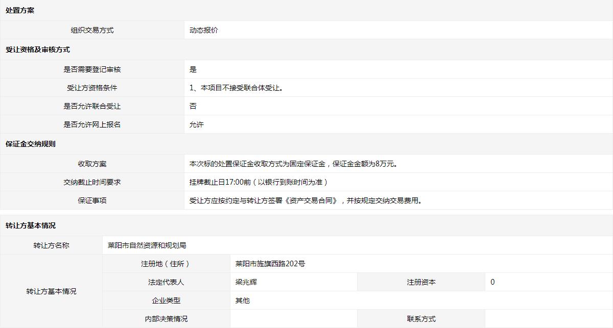 轉(zhuǎn)讓方:萊陽市自然資源和規(guī)劃局