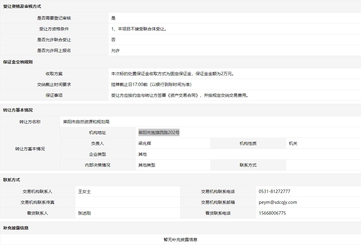 轉讓方:萊陽市自然資源和規(guī)劃局