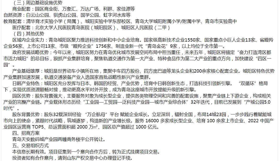 青島天安數碼城產業(yè)園商務樓宇轉讓