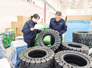 海關(guān)關(guān)員查驗(yàn)云南省市場采購貿(mào)易出口貨物。曾慶明攝